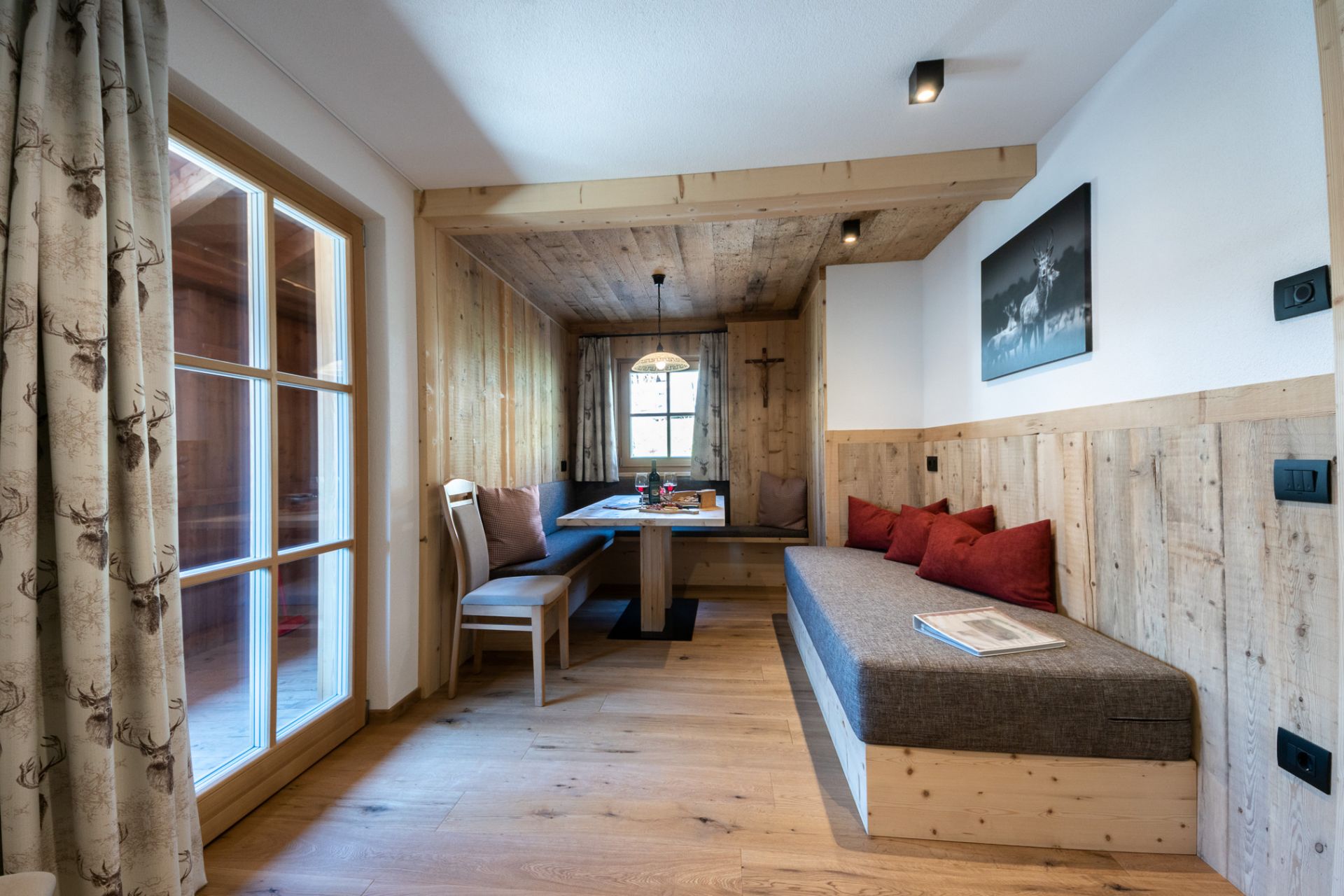 Questi due appartamenti sono l’ideale per 4-5 ospiti, sono situati al primo piano del nostro agriturismo e arredati in stile alpino con soffitti e pavimenti in legno. Gli appartamenti dispongono di due camere da letto, una matrimoniale e una camera doppia. È inoltre possibile aggiungere un quinto posto letto su richiesta. Nella zona giorno separata si trova il soggiorno con tavolo da pranzo e panca in legno e una moderna cucina attrezzata e funzionale. Il bagno privato è spazioso e dotato di box doccia, wc, bidet e lavabo.